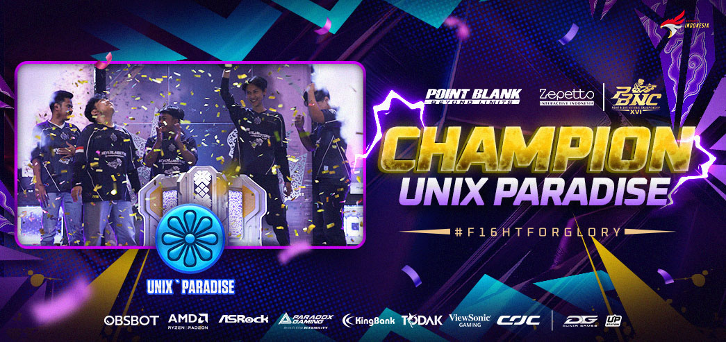 Rangkaian turnamen esports bergengsi, Point Blank National Championship (PBNC) XVI, resmi berakhir dengan ditetapkannya Unix Paradise sebagai juara. Kemenangan ini diraih setelah melalui persaingan sengit selama turnamen berlangsung, sekaligus memastikan posisi Unix Paradise sebagai wakil Indonesia di ajang internasional Point Blank International Championship (PBIC) 2026.
